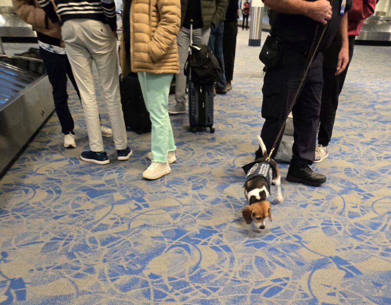 As you wait for your luggage at baggage claim, you may notice several working dogs going around and sniffing bags. This is the “Beagle Brigade”, dogs that work for the U.S. Department of Agriculture (USDA) and are trained to detect plant and fresh fruit and vegetable products.