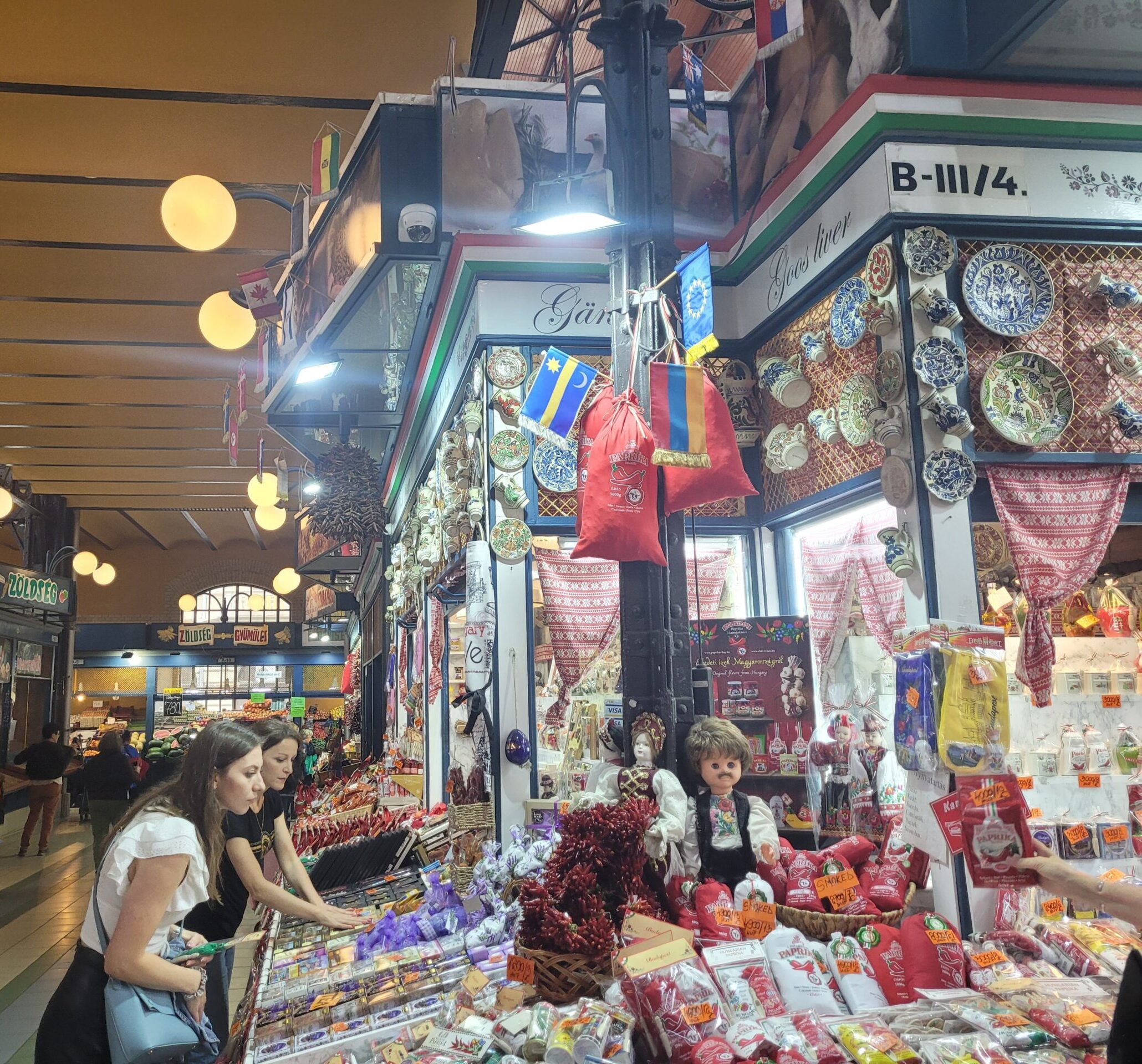 My visit to the market began with our wonderful guide, Andrea, giving the group a lesson on Paprika 101. I had no idea there were so many varieties and uses for paprika! The paprika at the market was beautifully packaged in pouches, with some including little spoons or scoops. I bought several bags of paprika as a delicious and unique souvenir for my family and friends.