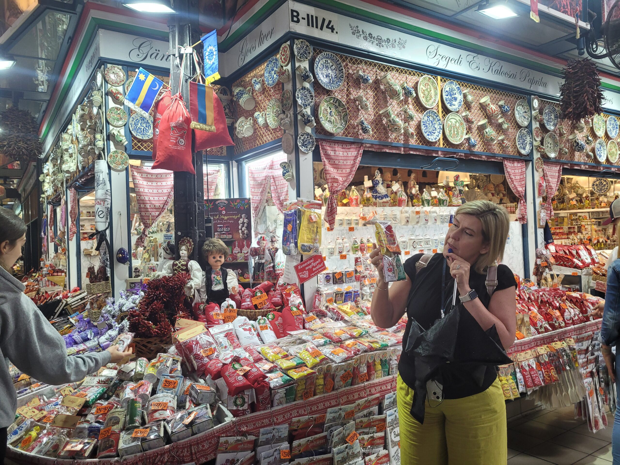 My visit to the market began with our wonderful guide, Andrea, giving the group a lesson on Paprika 101. I had no idea there were so many varieties and uses for paprika! The paprika at the market was beautifully packaged in pouches, with some including little spoons or scoops. I bought several bags of paprika as a delicious and unique souvenir for my family and friends.