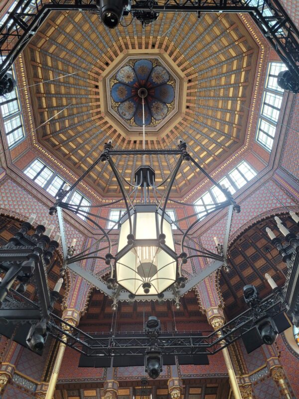 The Dohány Street Synagogue is the largest synagogue in Europe and the world’s second-largest, measuring 1200 square meters. Built in the mid-1800s in a Moorish Revival and Romantic style, the Dohány Street Synagogue has a capacity for 3000 people. The Moorish influence is noticeable in the exterior’s color scheme, decorative motifs, and architectural elements. Interestingly, the interior features components that are characteristic of Christian churches and not usually found in synagogues.