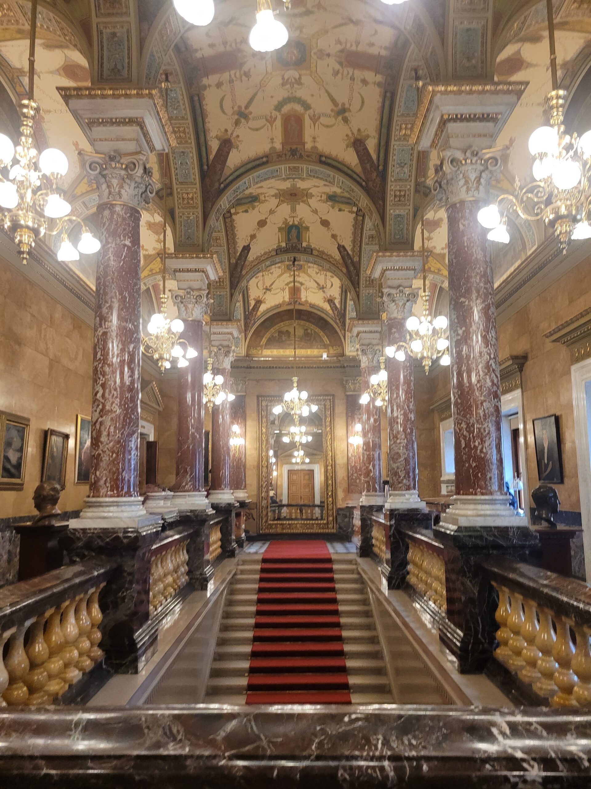 I had the opportunity to visit this magnificent opera house as part of my Rick Steves’ Europe Best of Prague and Budapest tour. On the last day of our tour, we stopped by the opera house for a guided tour that led us through the auditorium, royal staircase, Bertalan Székely Parlour, Feszty Bar, and foyer. In the end, two of the opera house’s soloists treated us to a wonderful concert. From its masterfully painted ceilings to its ornate staircases and well-appointed parlors, the opera house is truly a marvel of Hungarian artistry!