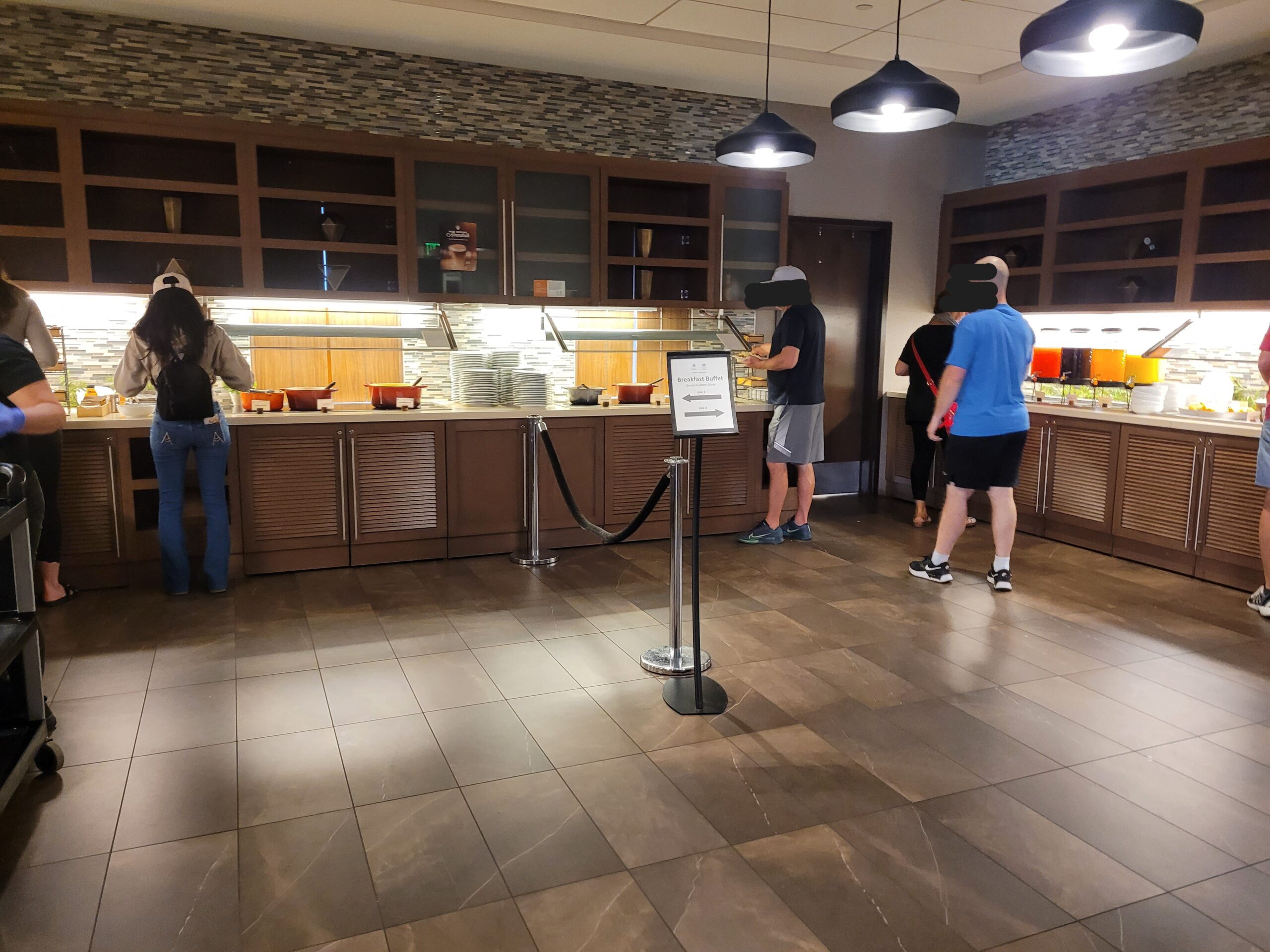 The continental breakfast provided the standard fare of eggs, meats, breads, cereals, bakery items, coffee, and juices. There was also a station that had cottage cheese, oatmeal, fresh fruit, and toppings such as granola and dried fruit. My favorite item was the breakfast potatoes, which I balanced with a helping of fresh fruit! The breakfast area can get a bit crowded on Saturdays and Sundays, but the staff did a great job of keeping the food well-stocked, and there was plenty of seating available.