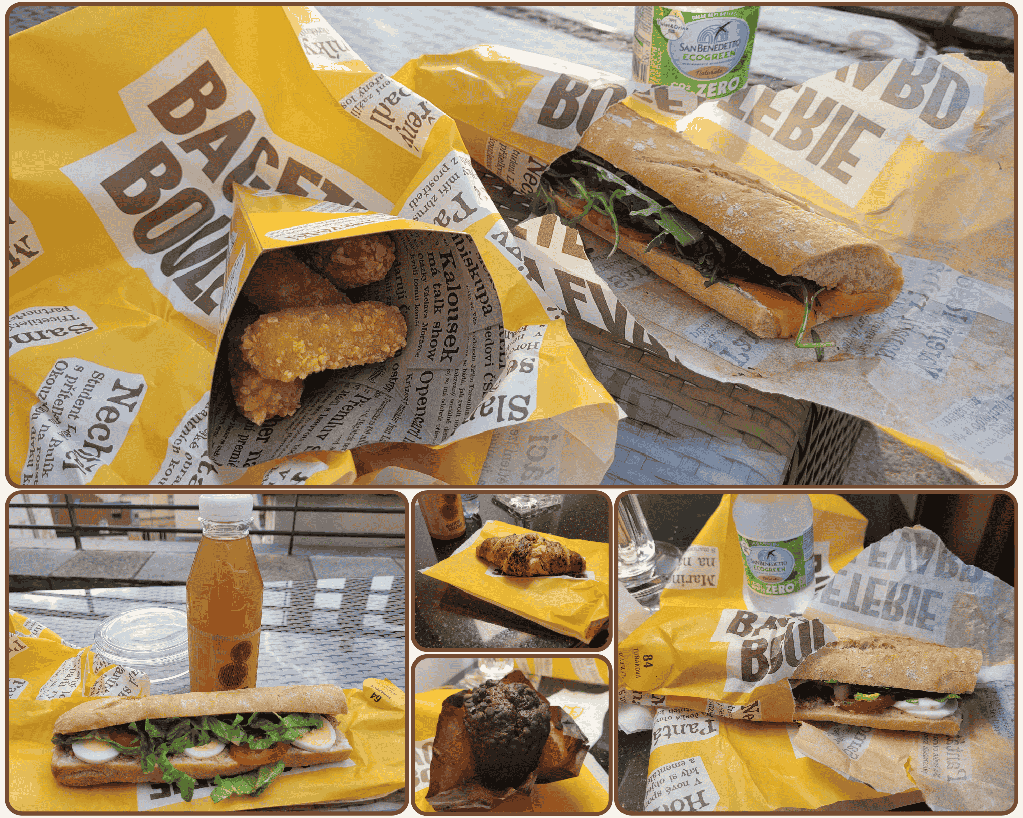 I discovered this sandwich shop upon arriving in Prague and was looking for a quick bite after a 26-hour journey. Part of a local chain, Bageterie Boulevard serves sandwiches, soups, salads, various sides, and delicious desserts. There was a location near my hotel, and given that my hotel room had a terrace with a view, I always opted to take my food to go. Nothing beats outdoor dining with a view!