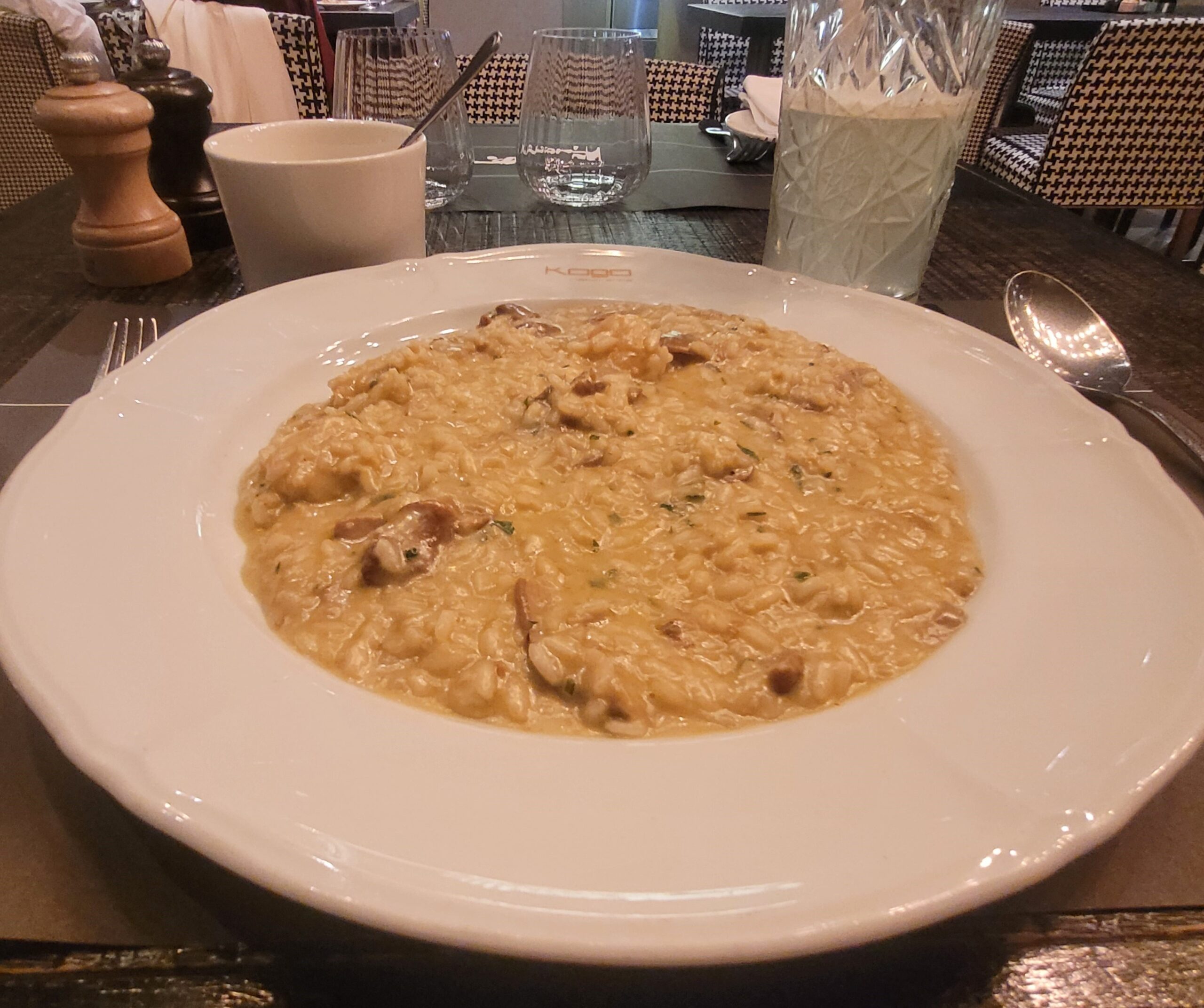 I am a fan of risotto, so for my meal, I ordered the risotto mare e monti (risotto with shrimp and porcini mushrooms). The shrimp and mushrooms were well prepared and plentiful, but the dish was saltier than I prefer. To drink, I ordered a lemonade, which was tart and refreshing. While my dish wasn’t perfect, my tourmates who visited Kogo Havelská say they really enjoyed the pasta dishes they ordered. Regarding other aspects, this restaurant provided excellent customer service and a pleasant atmosphere.