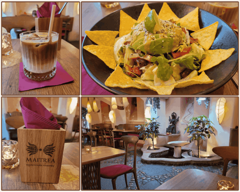 Maitrea is a wonderful vegetarian restaurant located one block from Old Town Square. When searching for the best vegetarian restaurants in Prague, Maitrea was consistently listed in every guidebook and on every must-try list. On my first visit, the hostess shared that the downstairs area was better, and she was correct. It was a very peaceful area with some lovely water features and plants. This restaurant was truly an oasis from the hustle and bustle of the crowds!!