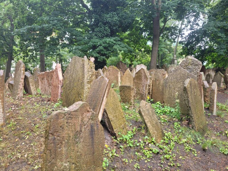 Note: Our tour of the Jewish Quarter was held on a stormy morning, so I was unable to photograph the synagogue exteriors. Thanks to a brief respite in the rain, I was able to take photos of the Old Jewish Cemetery.
